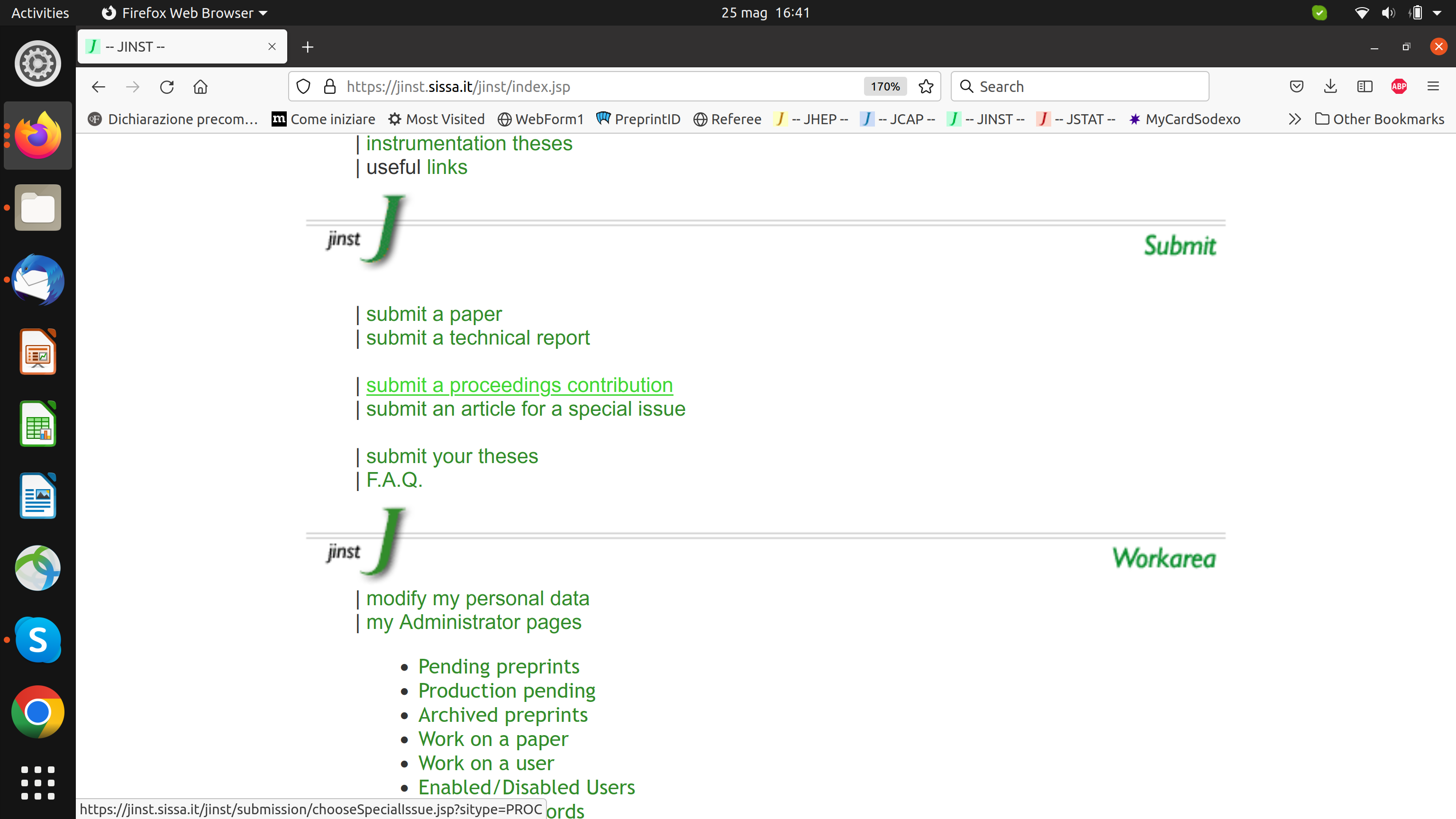 1. Connect to jinst.sissa.it, register (if needed) and login;