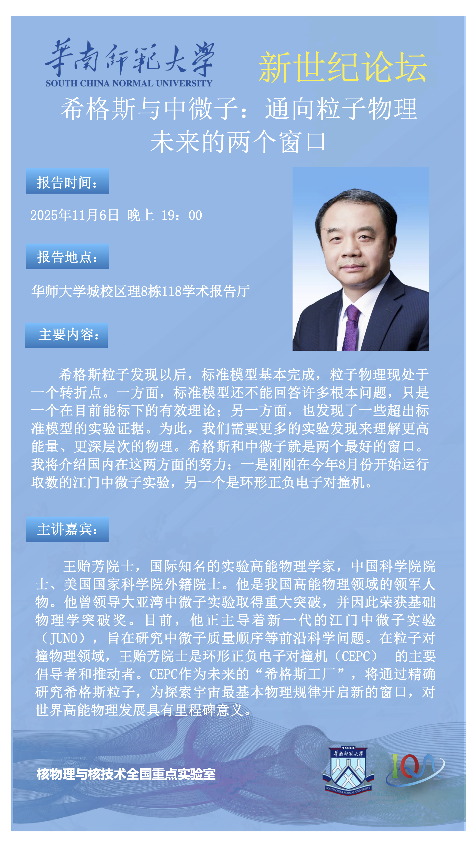 The 2025 International Workshop on the High Energy Circular Electron Positron Collider (CEPC2025) will take place in Guangzhou, November 6-10, 2025, co-hosted by South China Normal University and the Institute of High Energy Physics, CAS.