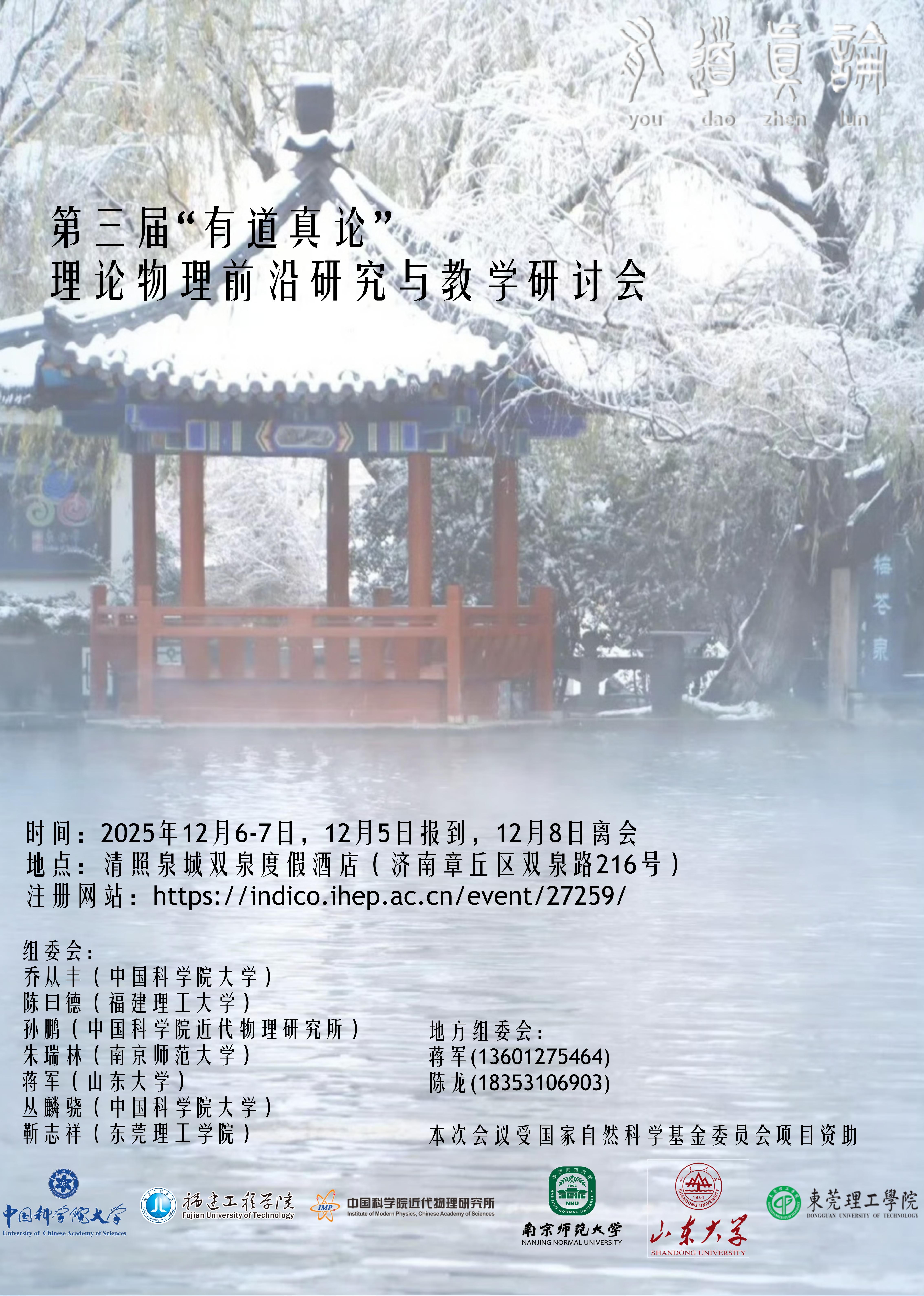 我们诚挚地邀请您参加将于126日-7日在济南举行的第三届“有道真论”理论物理前沿研究与教学研讨会。“有道真论”是一个面向广大科研工作者和大学生的开放学术论坛,秉承论道求真的科学精神,为大家提供一个传播科学知识,交流学术思想的平台。目前已成功举办线上论坛30余场。