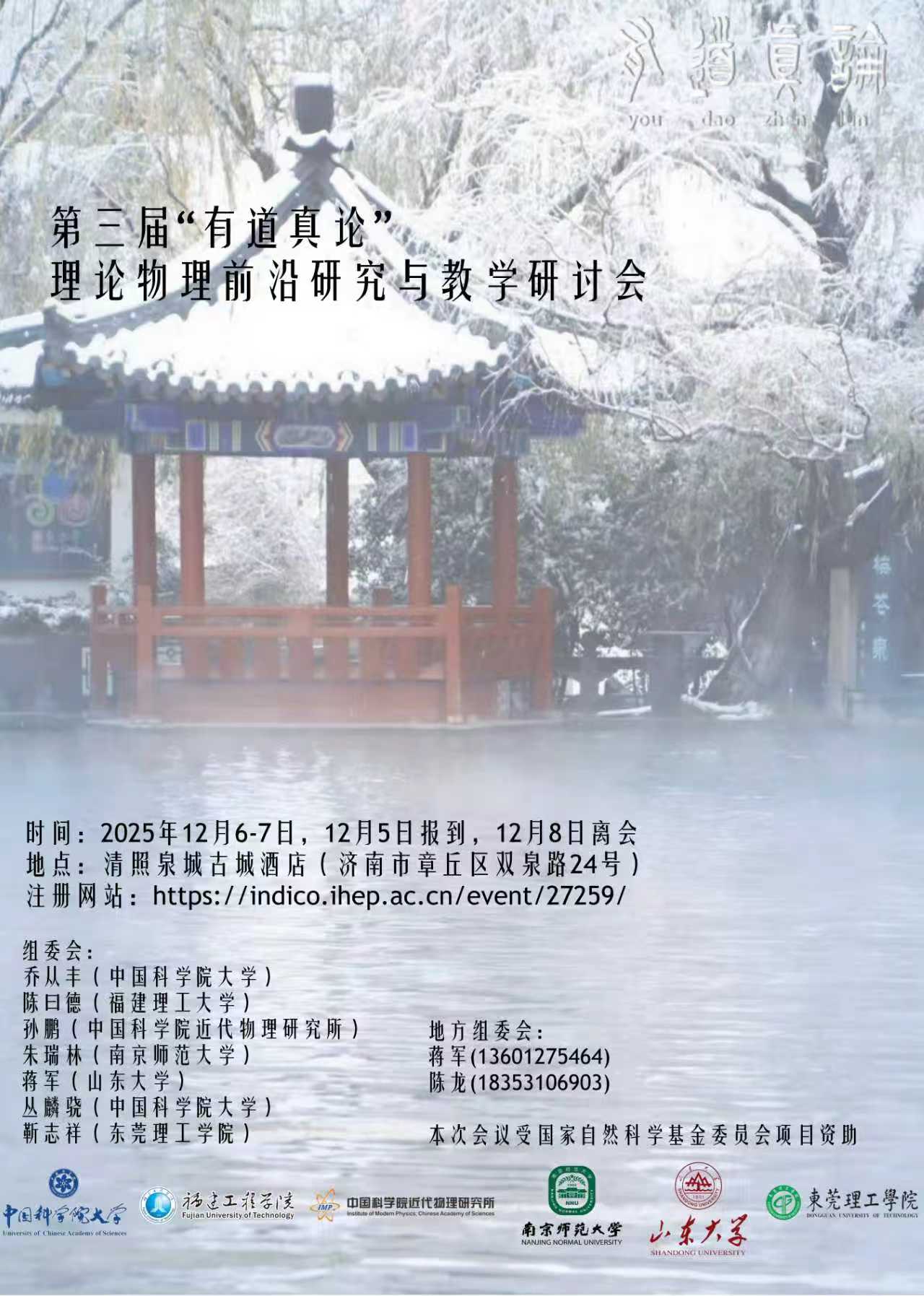本次会议受国家自然科学基金委员会项目资助。本次会议由中国科学院大学、福建理工大学、中国科学院近代物理研究所、南京师范大学、山东大学、东莞理工学院共同主办,山东大学承办。会议食宿及交通费自理,组委会协助安排住宿。