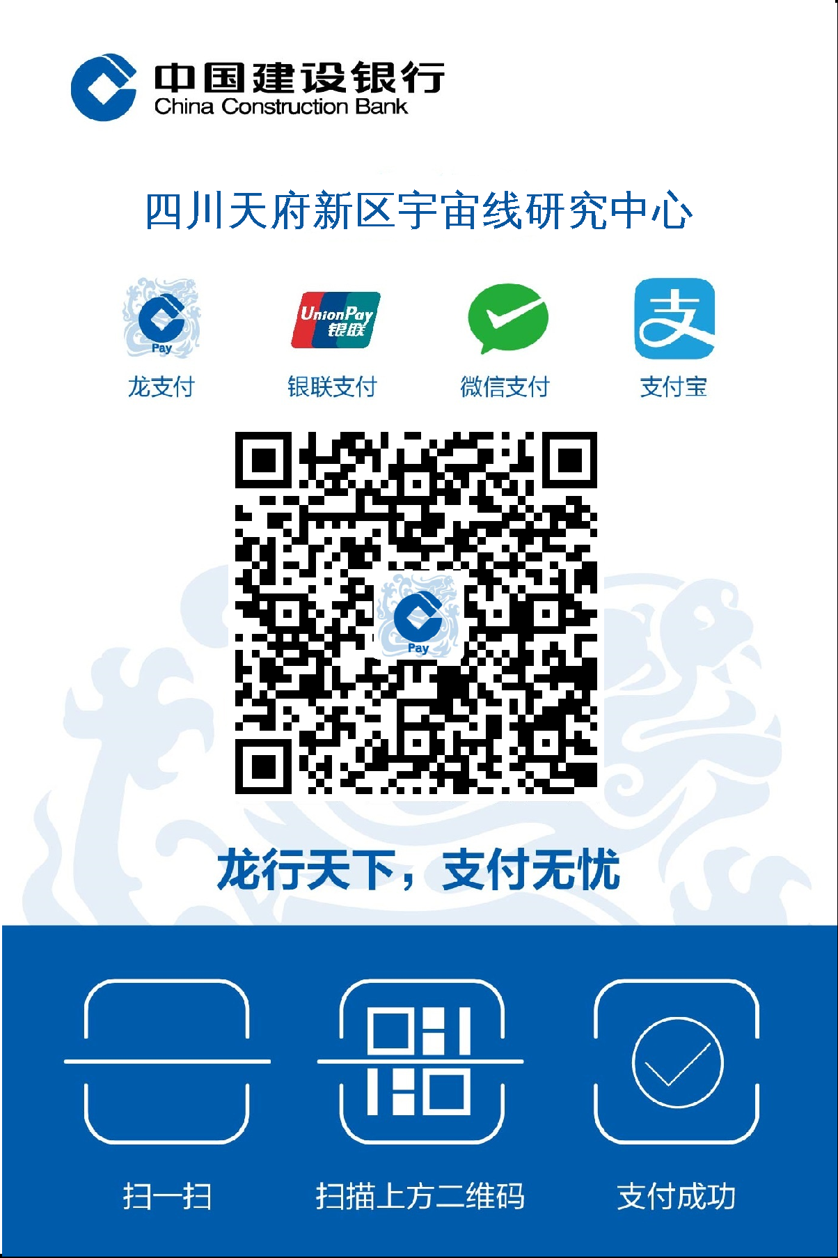 QR code payment: scanning the QR code as follows. Please remember to remark full name while you pay the fee this way. 如扫码支付请务必备注:中文姓名