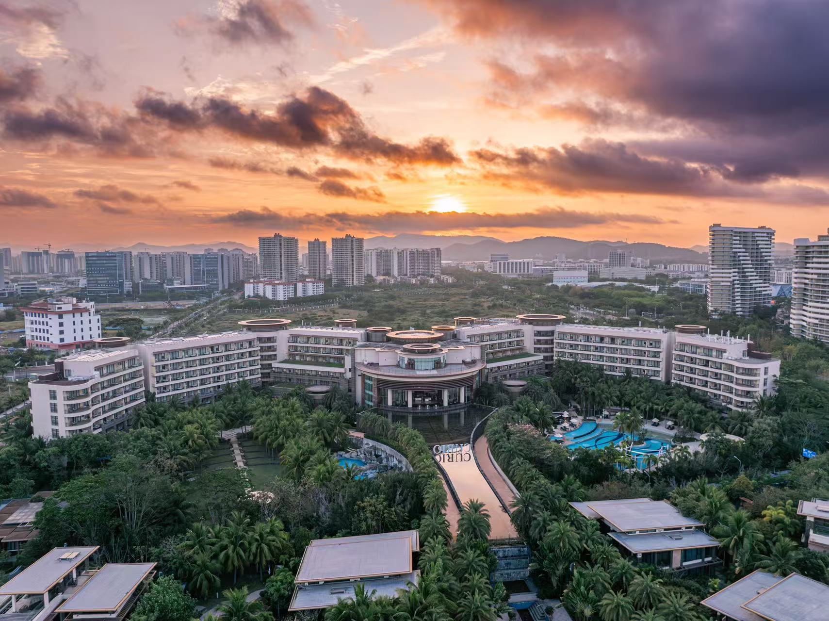 三亚崖州湾度假村距离三亚凤凰国际机场25分钟车程,距离市区35公里