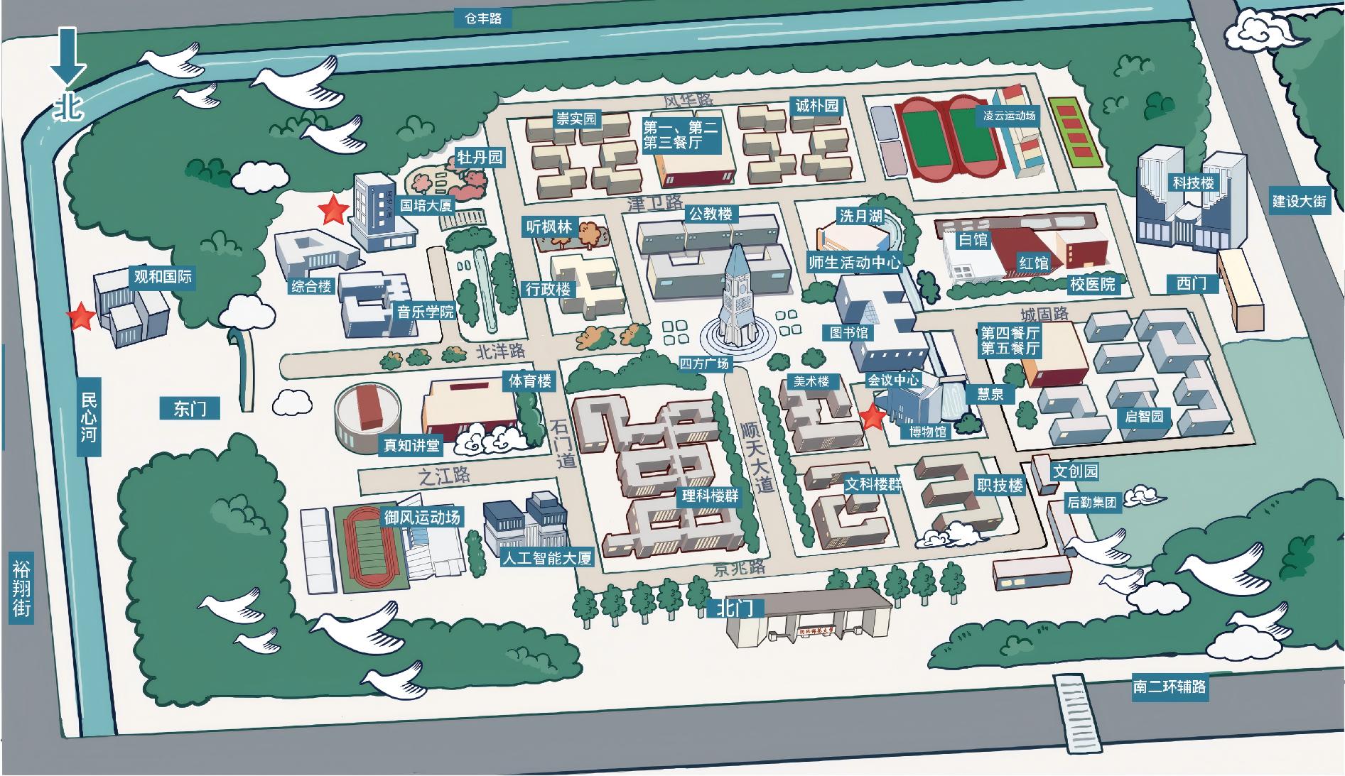 ① 出租车/网约车:石家庄北站南广场B1地下停车场网约车上车点→河北师范大学东门,约13.7公里,行程预计49分钟,费用约35元。